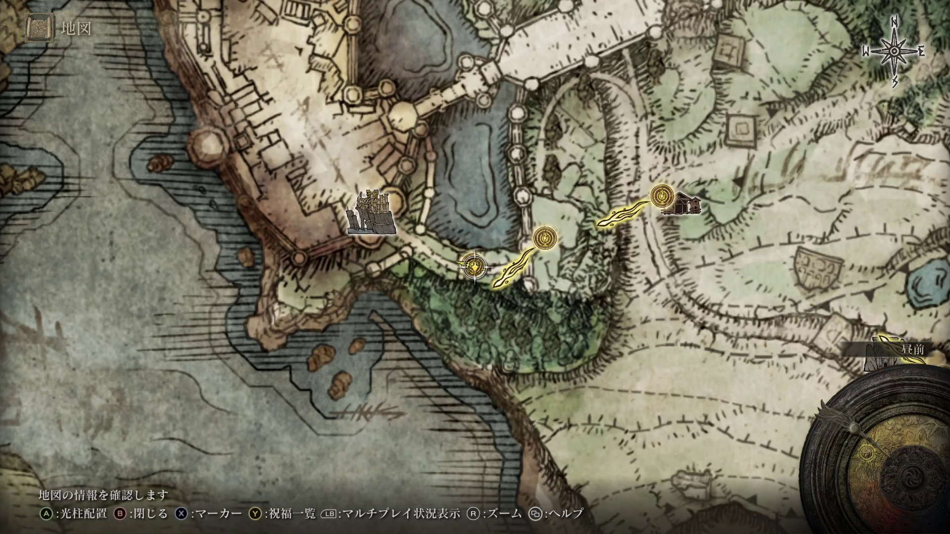 画像はマルギット戦後に出現する祝福の場所ですが、ここから道なりに進めばストームヴィル城に行けます。