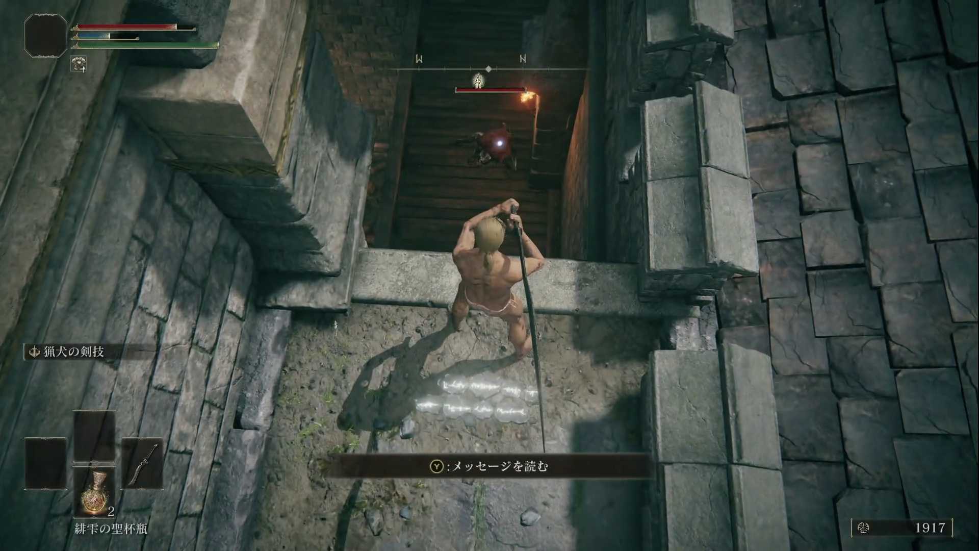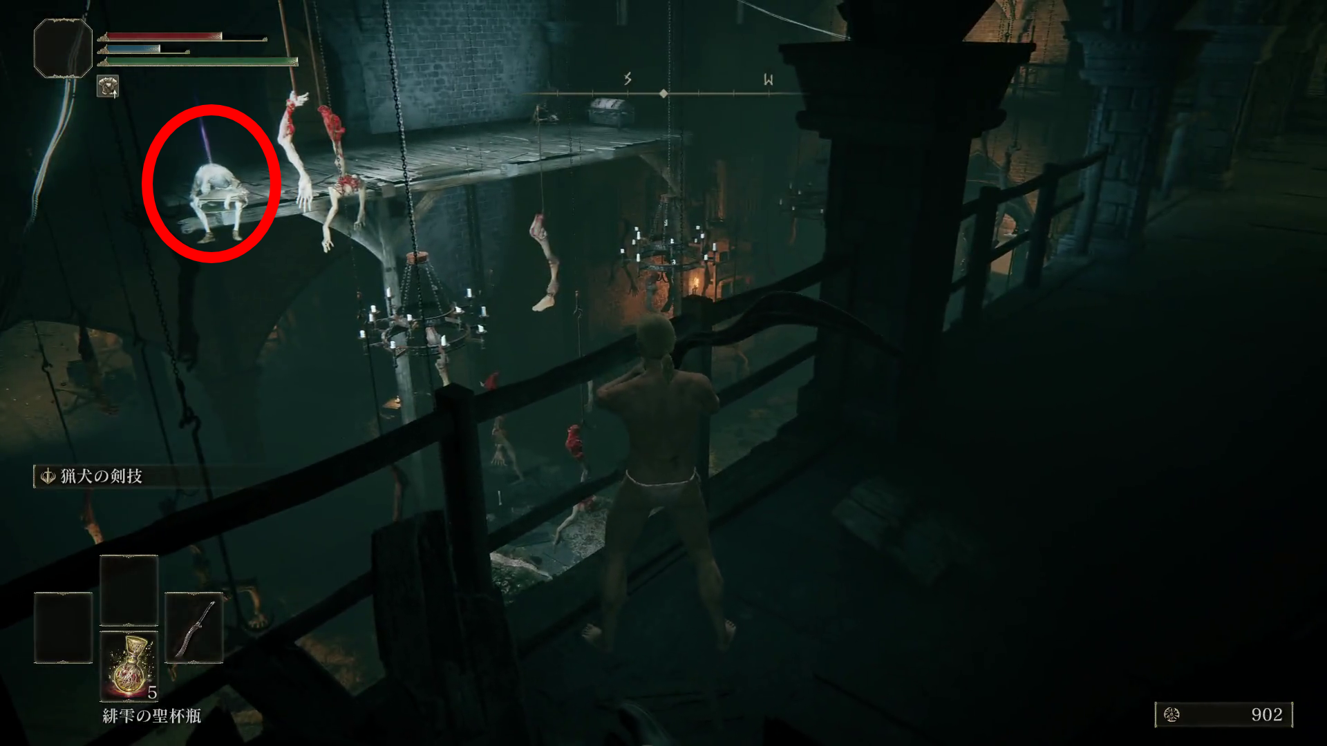 ハシゴを登り、真っ直ぐ進んで下を見ると流刑兵がいるのが確認できます。