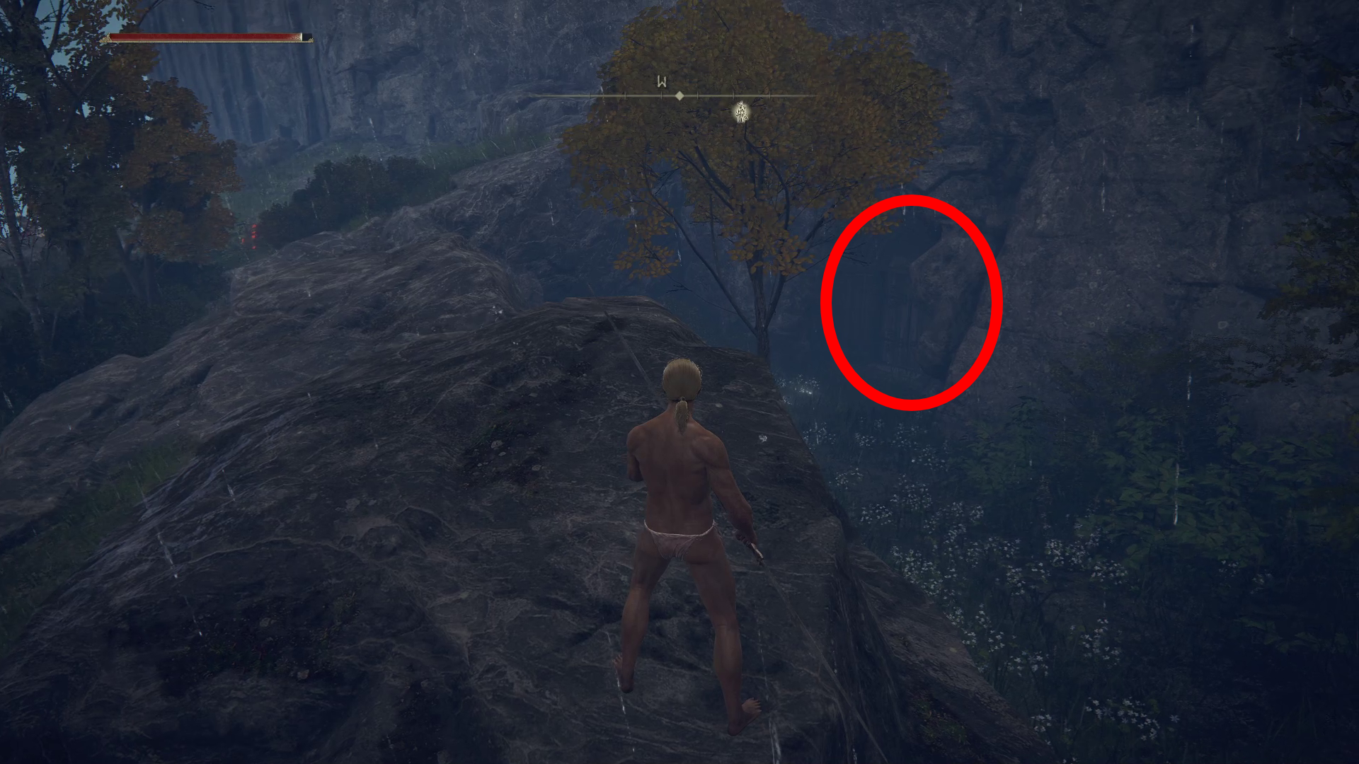 画像の位置で少し崖に囲まれたような場所にダンジョンの入口があります。