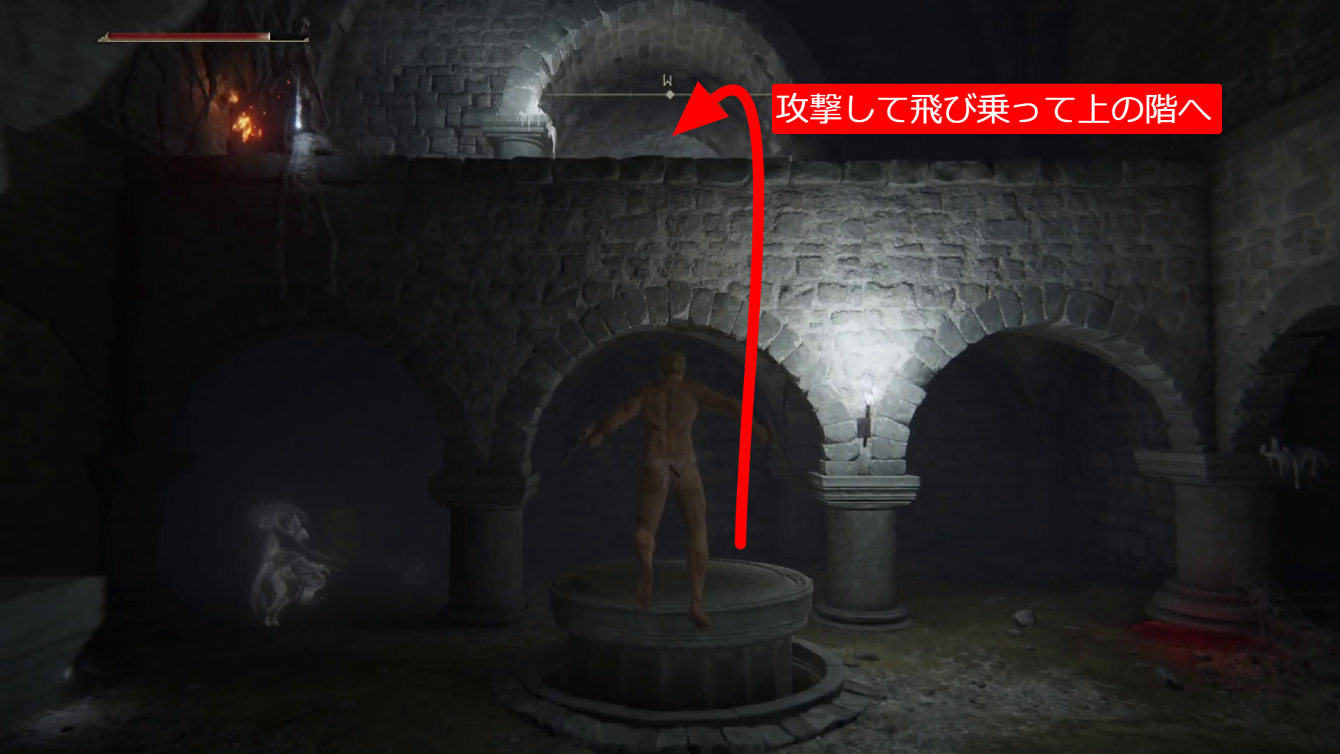 なので引っ込んだ状態で攻撃を当て、すぐに飛び乗ると上の階に移動することができます。