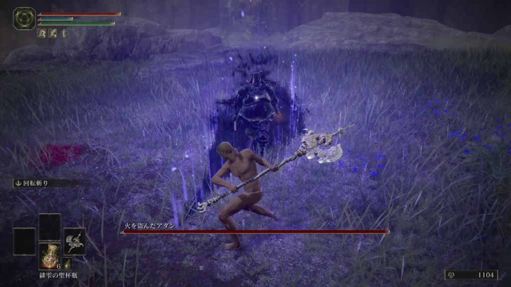 フレイルの片手持ちと両手持ちを切り替えて戦ってくるが、魔術は左手で使うのでもちろん両手持ちの時は魔術を使えない。