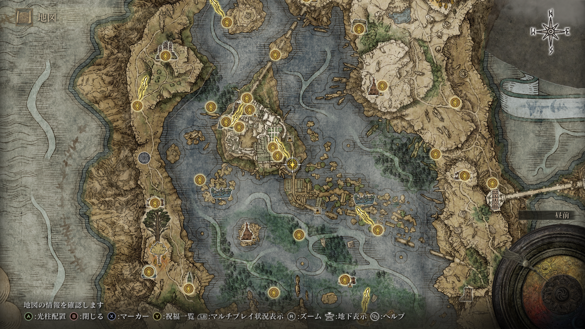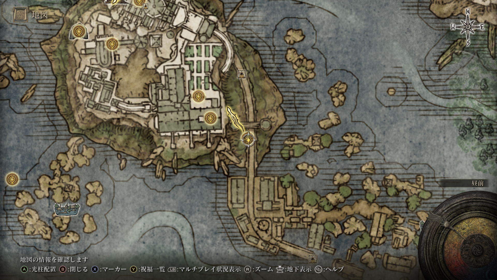 | 黄金のルーン【4】 | 大水車の先の建物の階段を上がらず、西(W)方向に進んだ先の右手。大水車の頂点が見える手前。 |