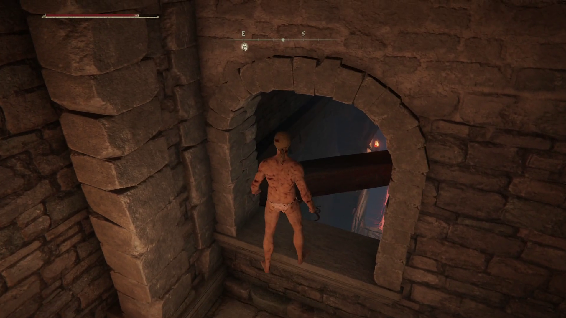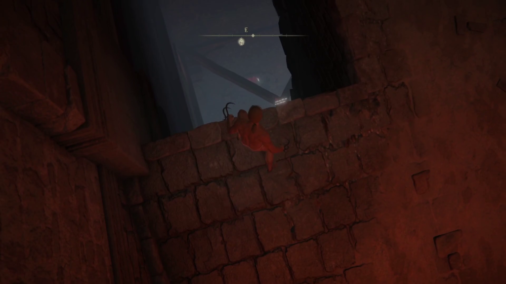 梁の上には1つ目の坂の途中の両脇に開いている穴から落ちるか、2つ目の坂の下にある曲がり角の両脇の穴から下に降りて猟犬騎士のいる場所のハシゴを登って下さい。