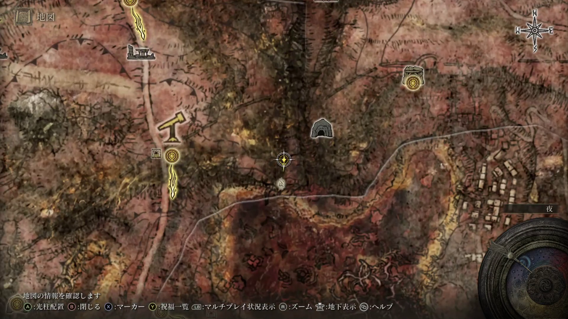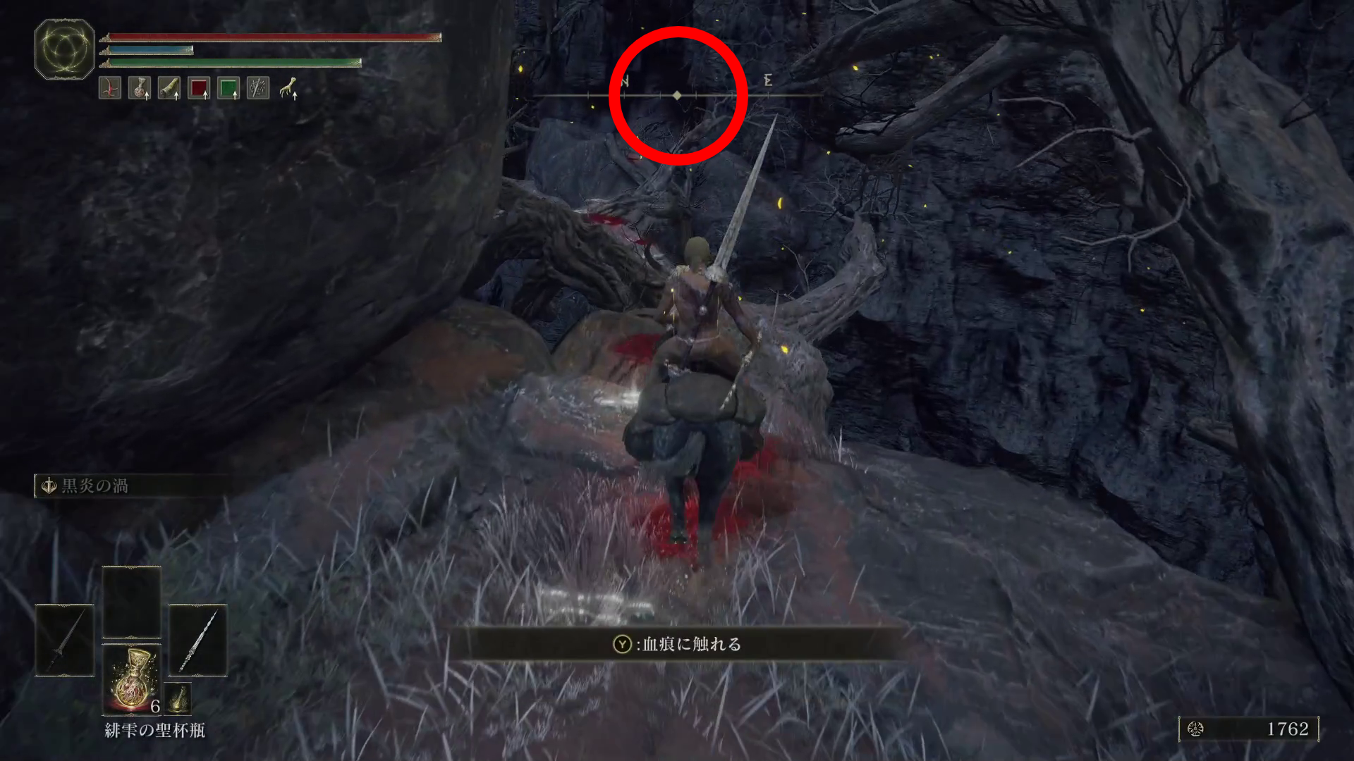 ケイリッドの中央に広がる沼地の崖の上に人さらいの鉄人形が1体だけいる場所があり、そこの崖から出ている樹を渡って入口へ行きます。