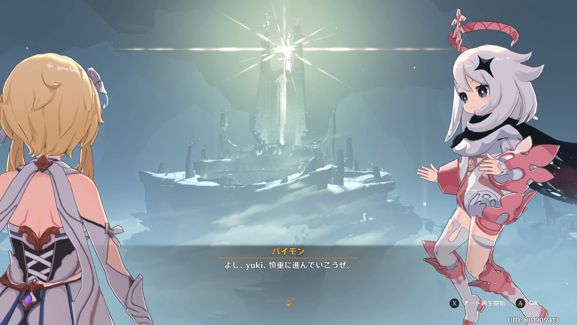 淵下宮に入ってしばらく進むとクエストが発生して、パイモンに周りを調査しよう!と言われます。