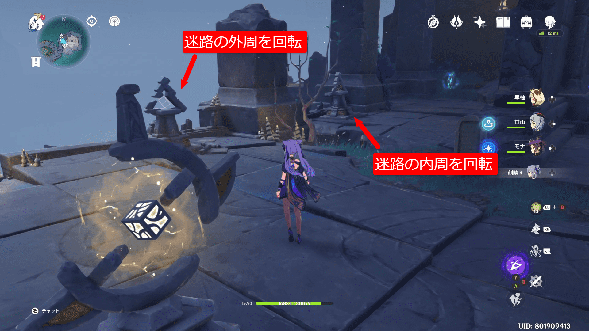 その後2つの装置を叩くのですが、迷路側を向いて左の装置が迷路の外周を回転させ、右の装置が迷路の内周を回転させます。
