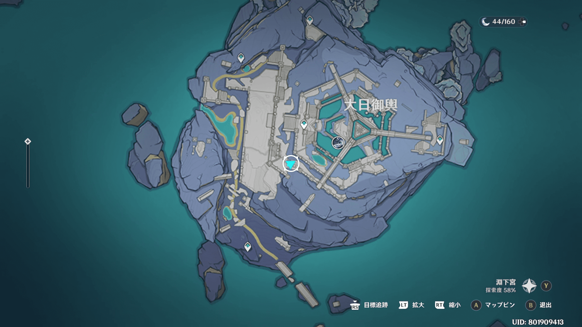 それではここにどうやって向かうかというと、まずは大日御輿の北のワープに飛んでください。