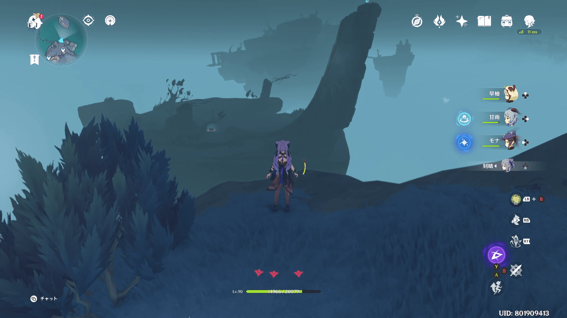 さらに道なりに進むと広場に出て、入口のすぐ左には氷元素で作動する装置があります。