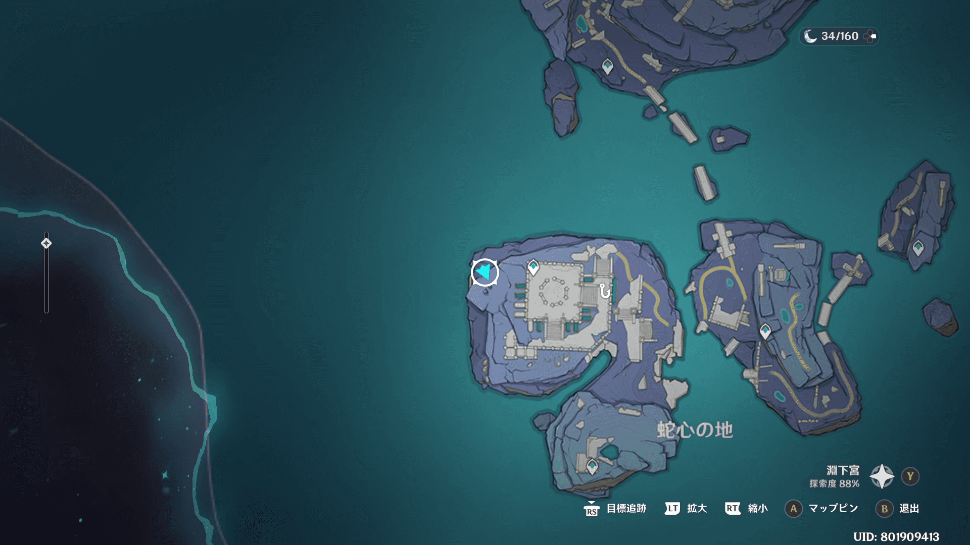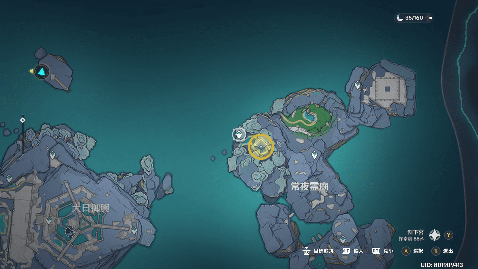 淵下宮の一番南西のワープポイントにジャンプをすれば目的地が見えます。