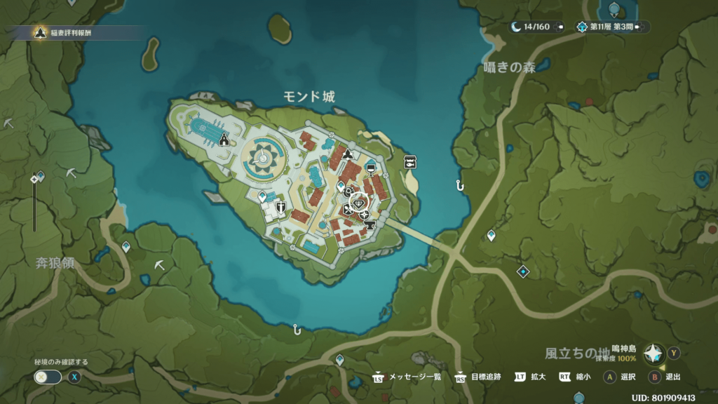 中央の印がある場所から外に出て周りを回るとパイモンが話しかけてくれます。
