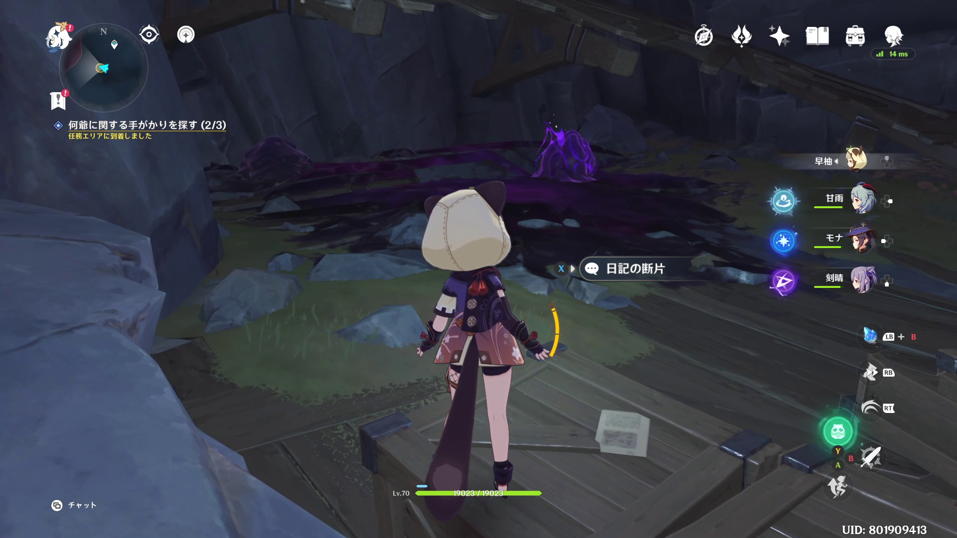 2つ目の日記の断片の東側にある巨大な岩の裏側です。