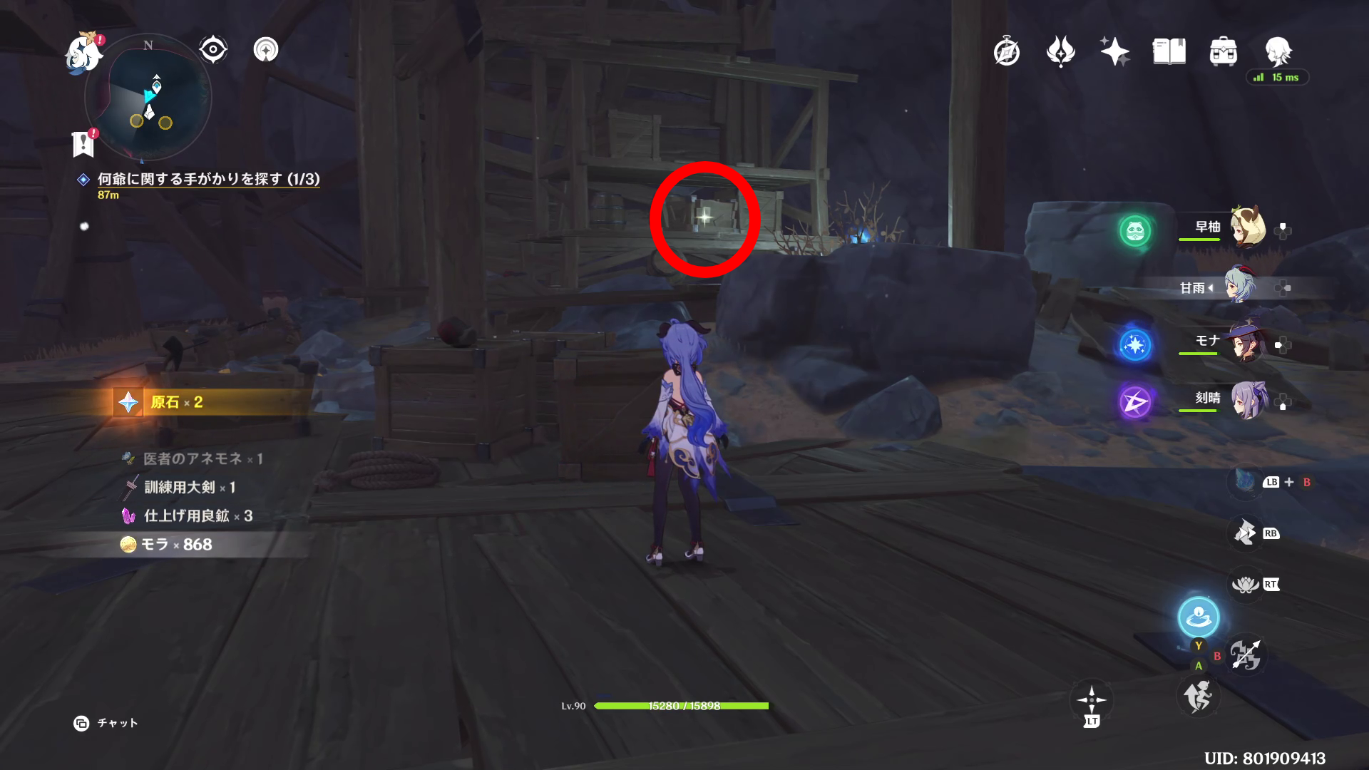 クエストが開始されるとまず流明晶石を拾います。