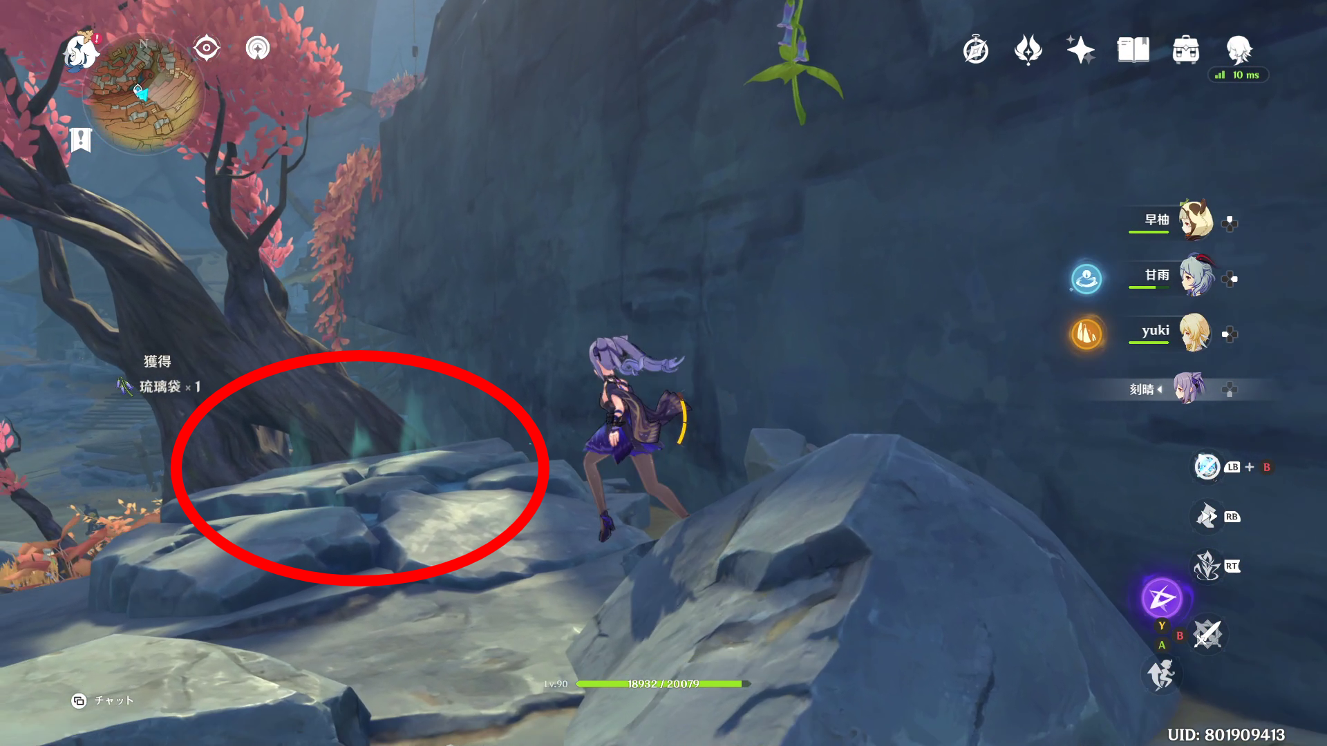 崖に瑠璃袋があるのでそれを目印にしてください。