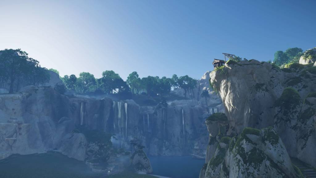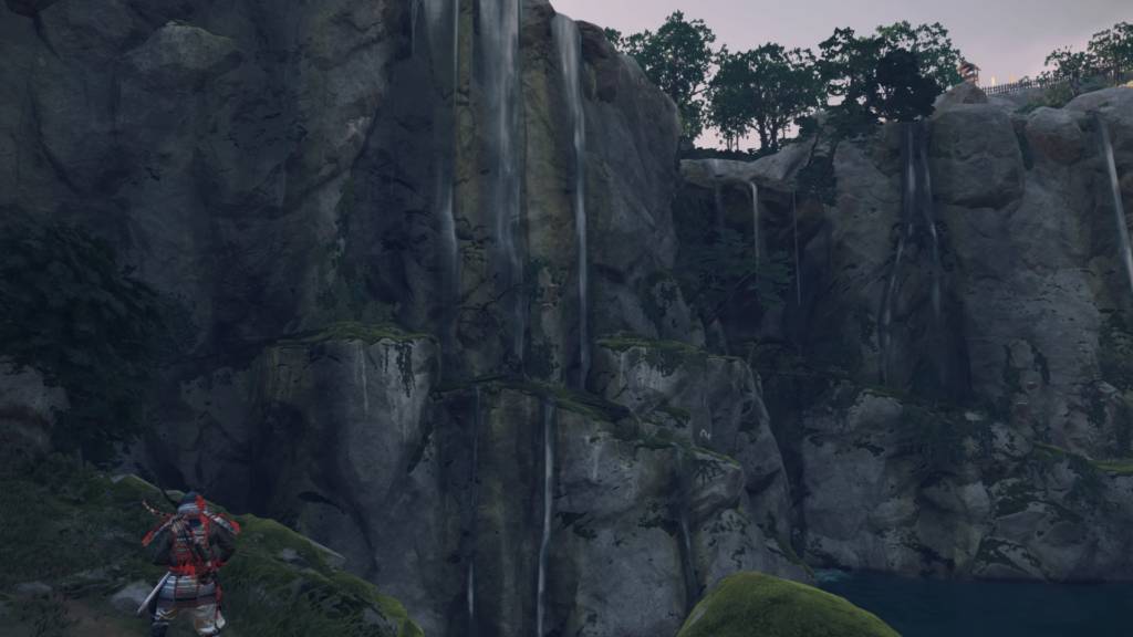 ▲このように滝壺を回り込んで登りきった崖の上に社殿があります。ポニョが居そう。