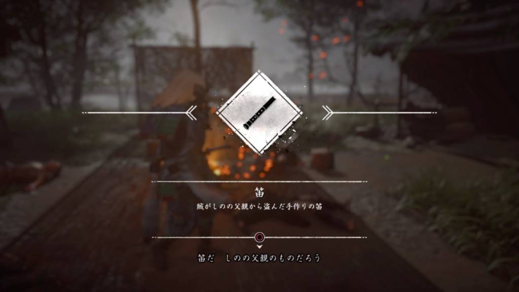▲一人取り逃がしましたが賊が父親から盗んだ笛と小石を取り返しました。小石?