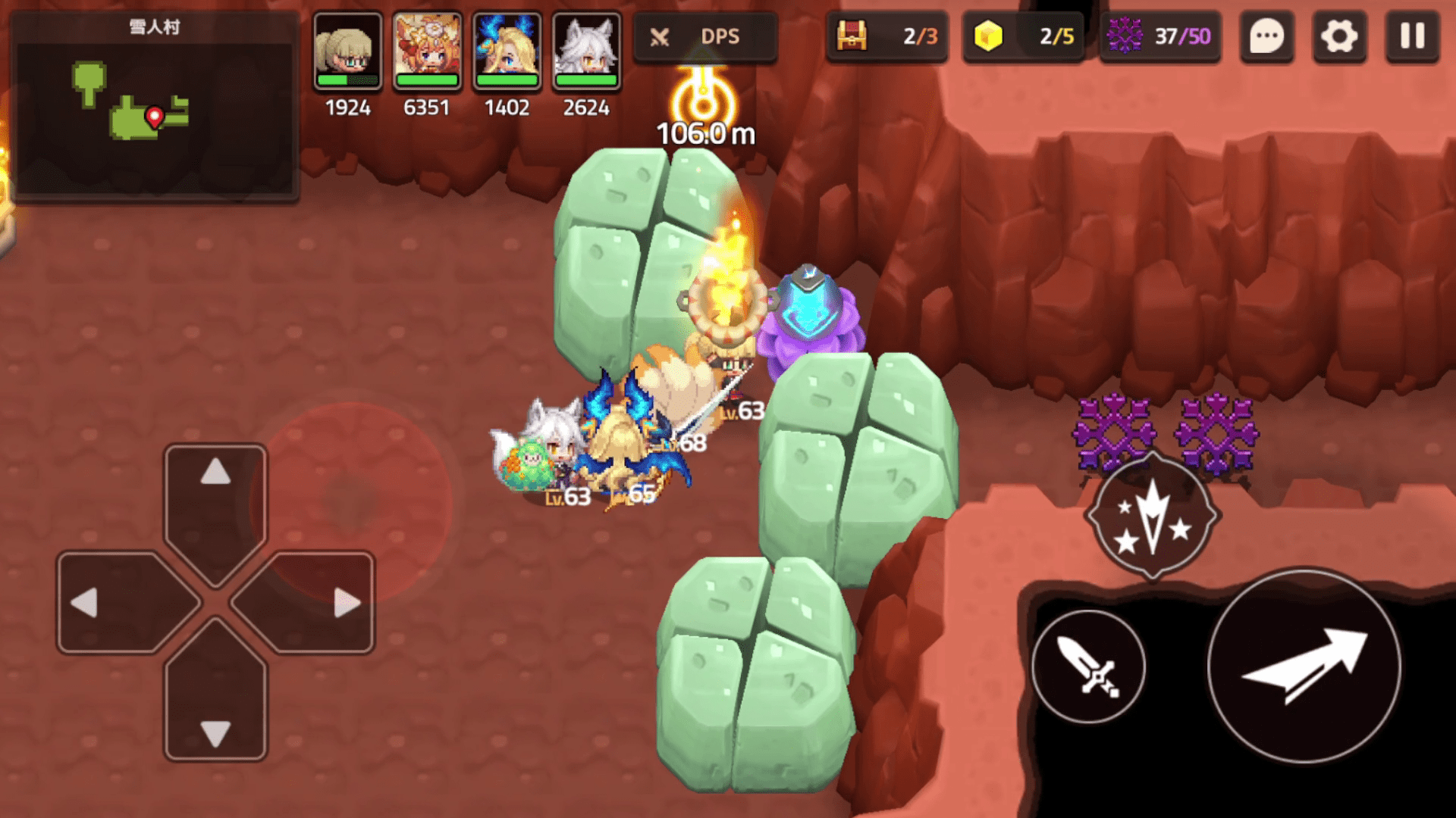 子供と雪合戦で勝負するフロアですが、そこの中央の雪の塊を火鉢で解かせばパープルコインが出てきます。