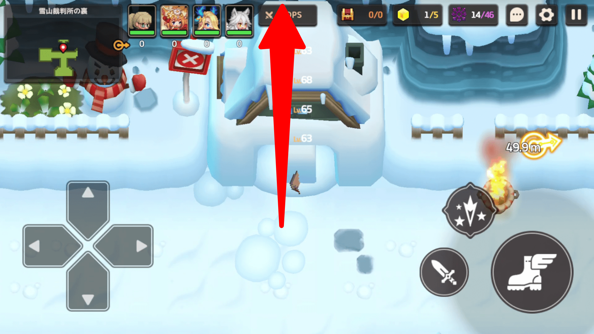ですので上の十字路の真ん中にある雪玉を利用します。