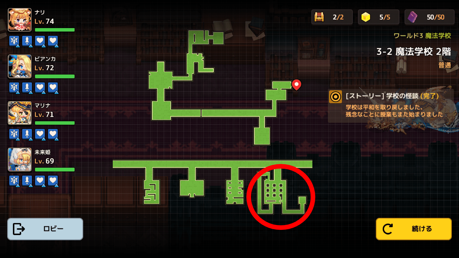 【ガーディアンテイルズ(ガデテル)】ワールド3-2「魔法学校 2階」|スターピースや宝物の場所も【攻略】