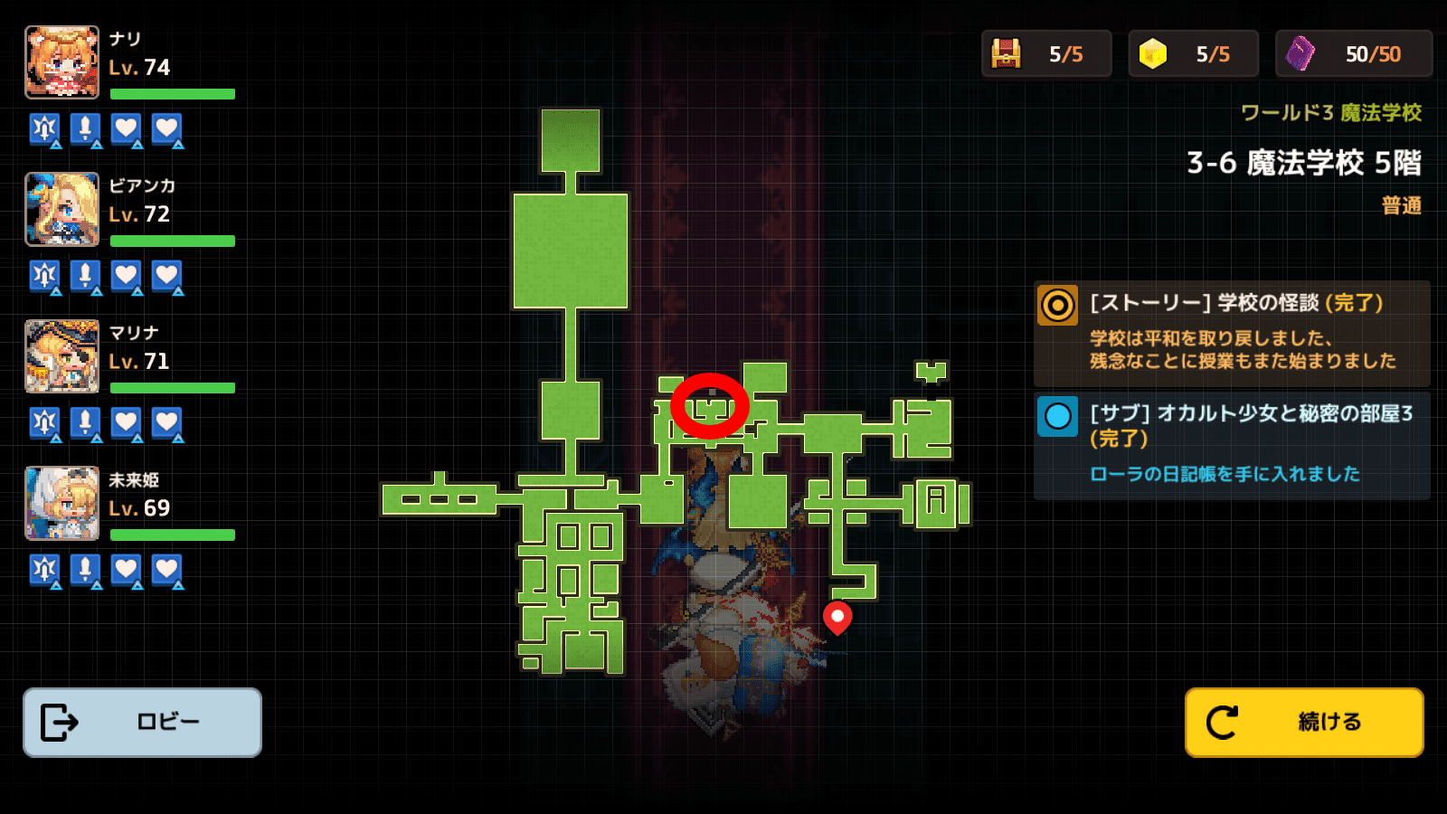 【ガーディアンテイルズ(ガデテル)】ワールド3-6「魔法学校 5階」|スターピースや宝物の情報も【攻略】